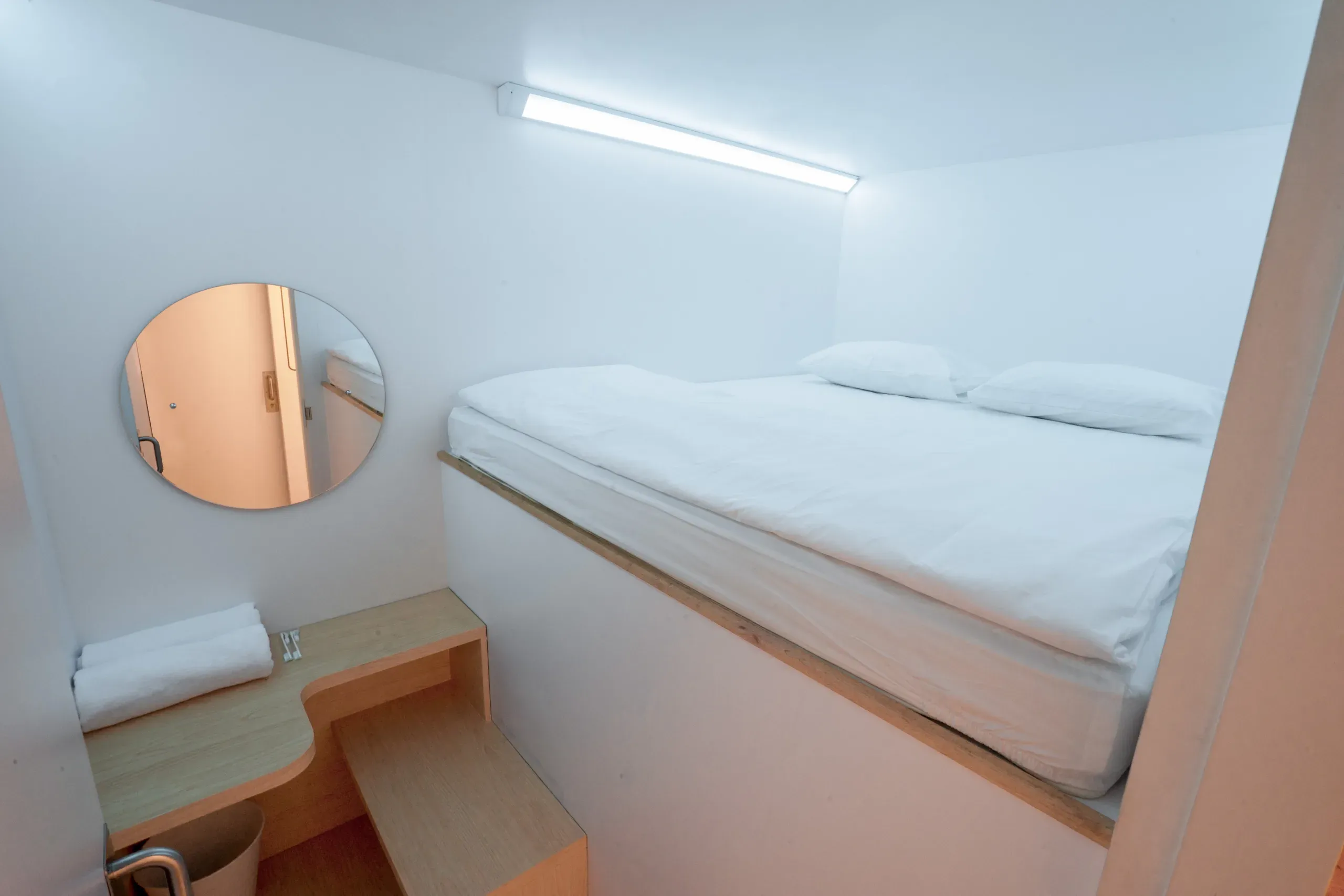 Fasilitas di hotel kapsul bernuansa futuristik ini juga lengkap banget walaupun harganya terjangkau. Kamu bisa tidur nyenyak di Pod yang memiliki B-Pad untuk mengatur pencahayaan Mood Lamp, mengaktifkan Sleep Meditation, dan menyesuaikan volume suara speaker bluetooth yang terhubung ke smartphone buat memutar musik.