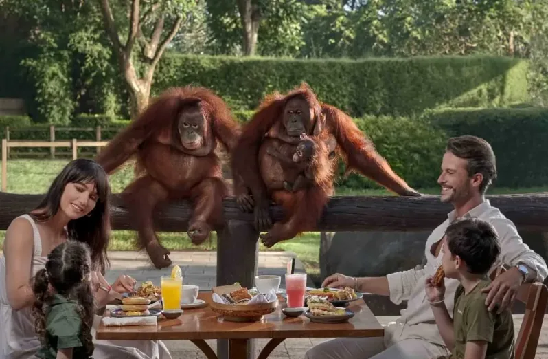Perbedaan Bali Zoo dan Bali Safari berikutnya adalah dari pengalaman bersantap makanan di dengan ditemani satwa liar. Jika berkunjung ke Bali Zoo, kamu bisa membeli paket Breakfast with Orang Utan yang hanya bisa kamu dapatkan di kebun binatang tersebut. Ada juga Gayo Restaurant di jantung Bali Zoo, yang menyuguhkan pemandangan terbuka elephant train sekaligus kebun penuh beragam burung tropis.