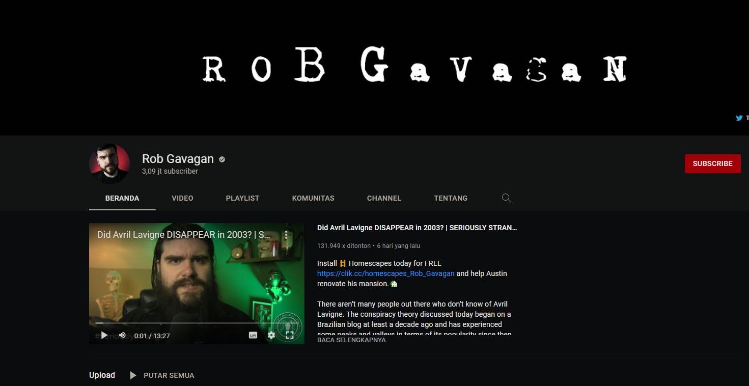 Dikenal sebelumnya dengan nama Rob Dyke, Rob Gavagan adalah rekomendasi channel YouTube mystery lainnya bagi kamu mystery addict. Selama bertahun-tahun, ia jadi tempat video menarik seputar kisah misteri.